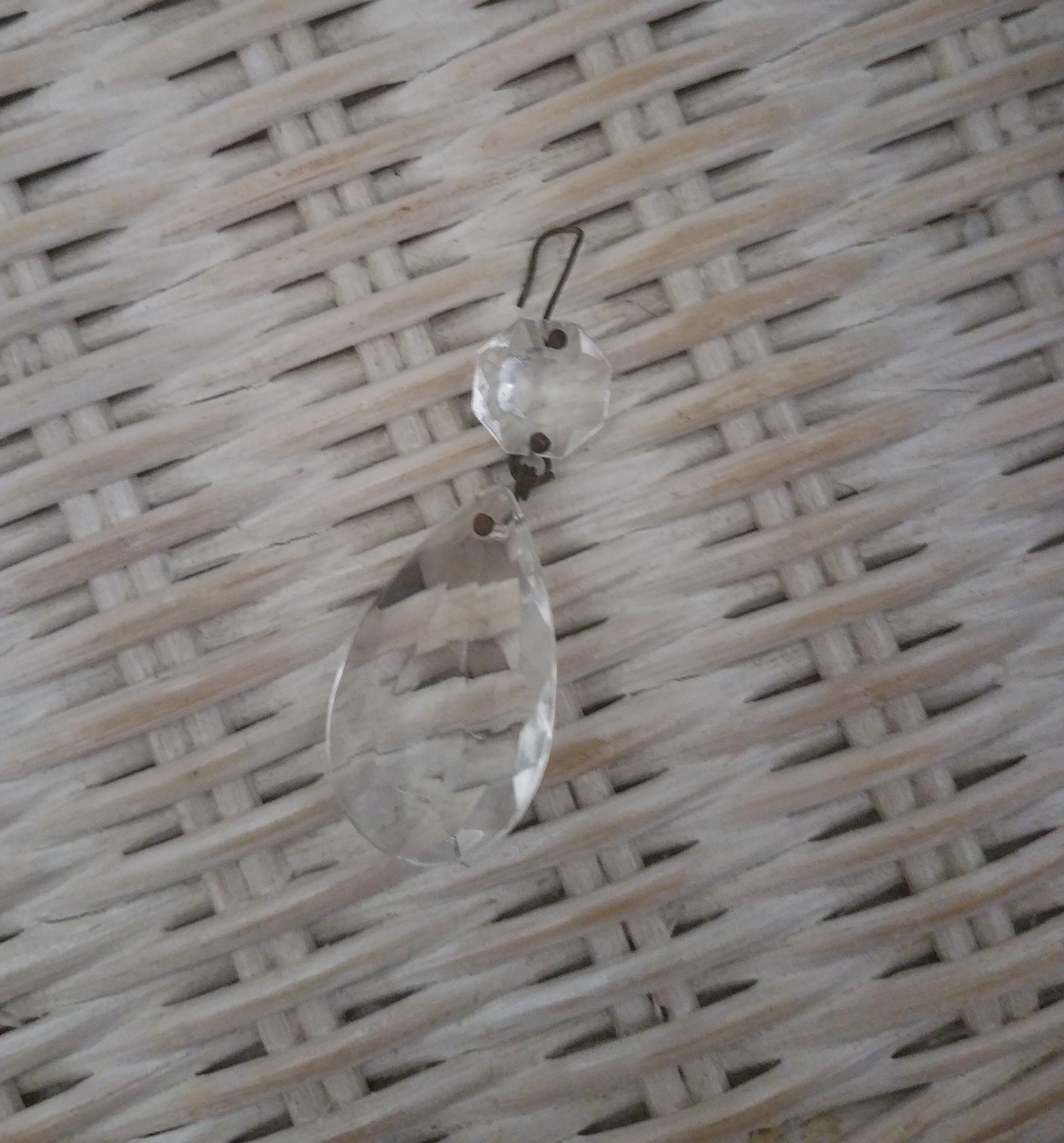 The crystal dangle is like an earring, hooked in place into a hole in the lamp’s ‘leaf.’ Just as an earring is secured in an earlobe.